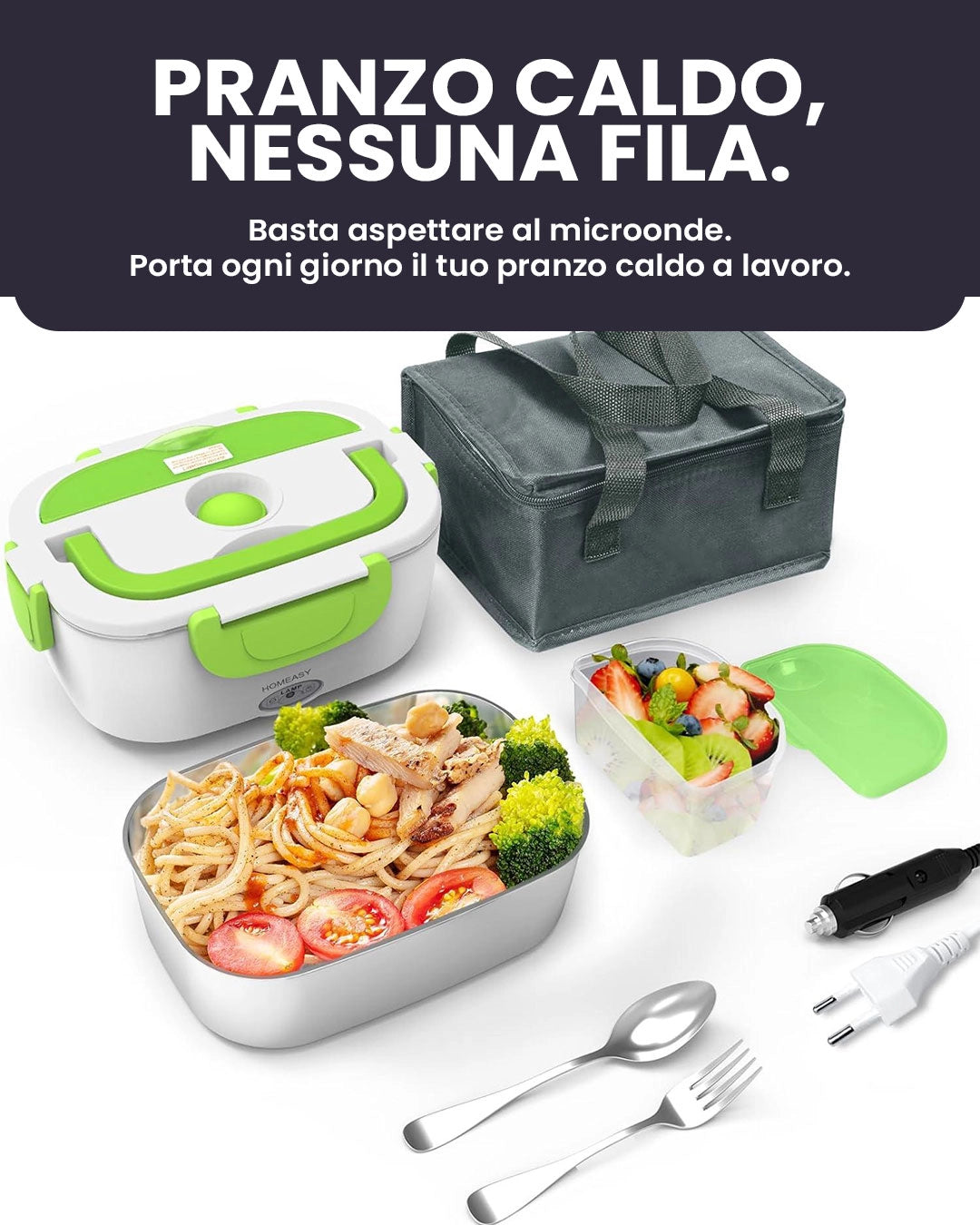 Con il Porta Pranzo Elettrico non devi più aspettare il tuo turno davanti al microonde. Lo colleghi alla presa o in auto, scalda da solo mentre lavori o ti rilassi e quando arriva il tuo momento di pausa… il pranzo è già caldo. Niente più code, niente più stress: solo pasti pronti da gustare, dove e quando vuoi.